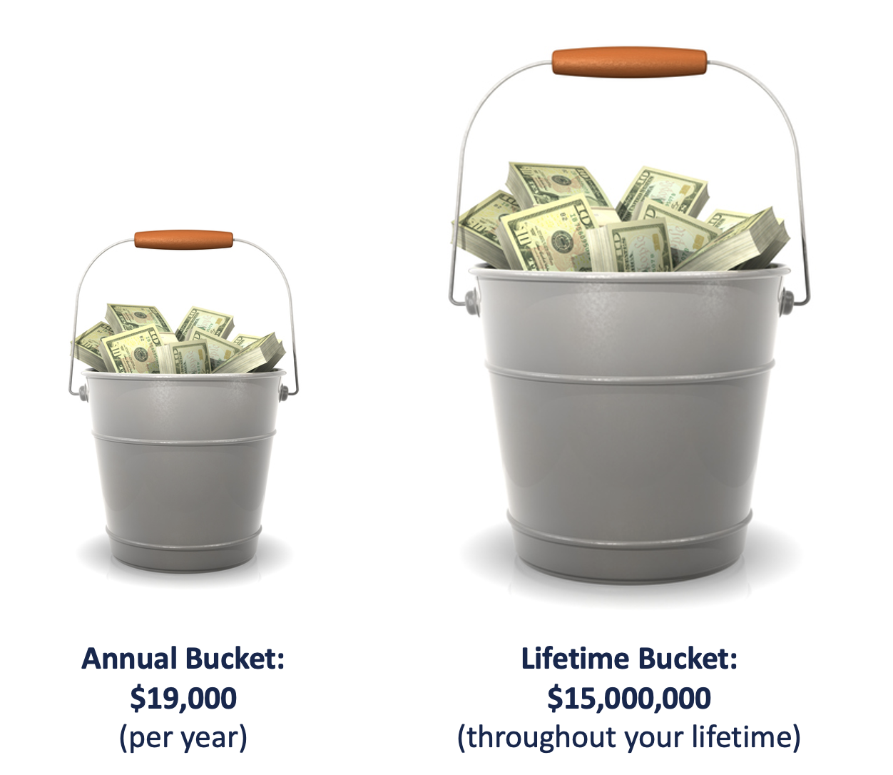- Additional Paperwork May be Required: If you're using the $19,000 annual bucket, the gift doesn't need to be reported to the IRS if you follow the proper procedures. However, if you're using the $15,000,000 lifetime bucket, you would need to file a gift tax return with the IRS (even though no gift tax would be due). This is done to notify the IRS that you're using part of your gift/estate tax exclusion.